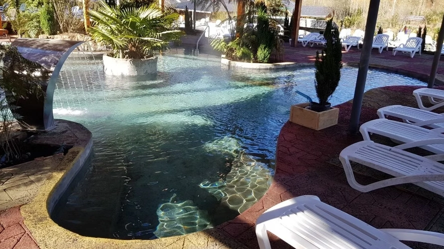 El efecto curativo se da específicamente por la composición del terreno por el que circulan las aguas. Parque Termal Río Trancura. En total una hectárea de piscinas construidas, con cascadas e hidromasaje, con una temperatura máxima de 42 grados Celsius. Estamos ubicados a 27 kilómetros de Pucón, por el camino Internacional y a 1,5 kilómetros de Catripulli, comuna de Curarrehue. Las aguas provienen directamente de la fuente termal, sin procesos industriales, del interior de la tierra a las piscinas. Acá no calentamos el agua, lo que le otorga propiedades curativas, certificadas por el Ministerio de Salud como “fuente curativa”, con importantes sales y minerales que ayudan al tratamiento de enfermedades dermatológicas, óseas, respiratorias y brindan bienestar general a quienes se bañan en ellas. Para potenciar la sensación, ofrecemos masajes relajantes y descontracturantes. Además contamos con un restaurante de montaña, con comedores panorámicos y una impresionante vista al Volcán Villarrica y al bosque nativo, con una carta que incluye jabalí, ciervo y otras preparaciones de la cocina chilena. Contamos con el canopy más largo de Sudamérica. En total 2 kilómetros, entre bosques centenarios y rincones que no podrás olvidar. Para grupos les invitamos a las cabalgatas y paintball, en un entorno que maravilla.