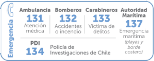 En caso de ser víctima de una emergencia o delito, contacta a Carabineros al 133 o acude a la estación de policía más cercana y/o contacta a tu Consulado en Chile.