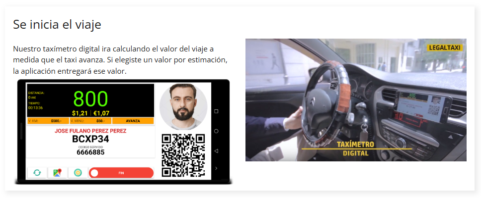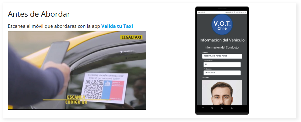 Esto permite al usuario tener la absoluta seguridad de que tanto el taxi que aborda como su conductor están debidamente registrados ademas de tener la certeza de saber quien es el conductor que lo transporta.